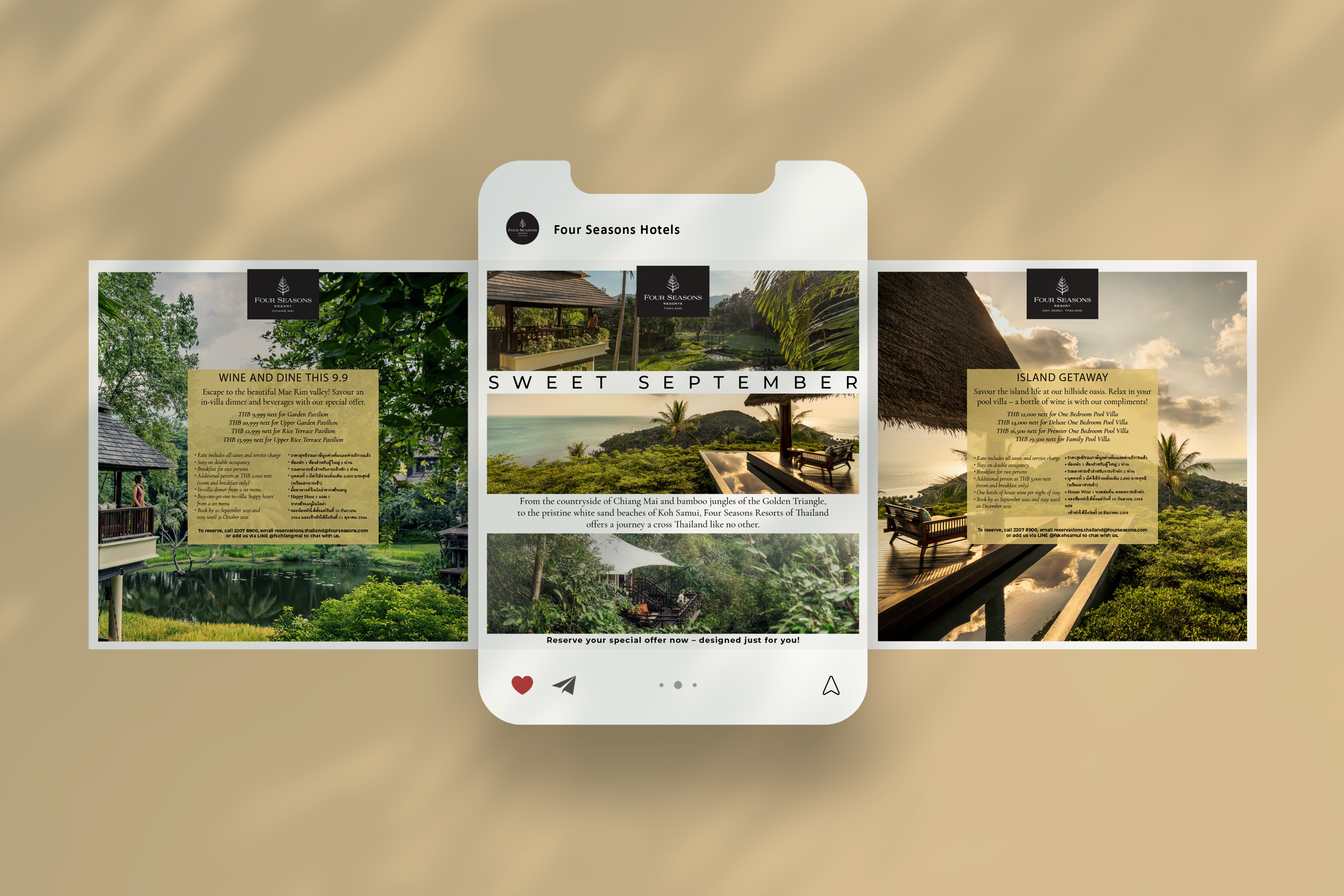 Worked as an in-house visual and digital designer for Four Seasons’ properties across Thailand, producing over 500 graphics to support luxury seasonal campaigns and guest engagement initiatives. Focused on maintaining brand consistency while localizing visual language for Thai cultural contexts and experiences.